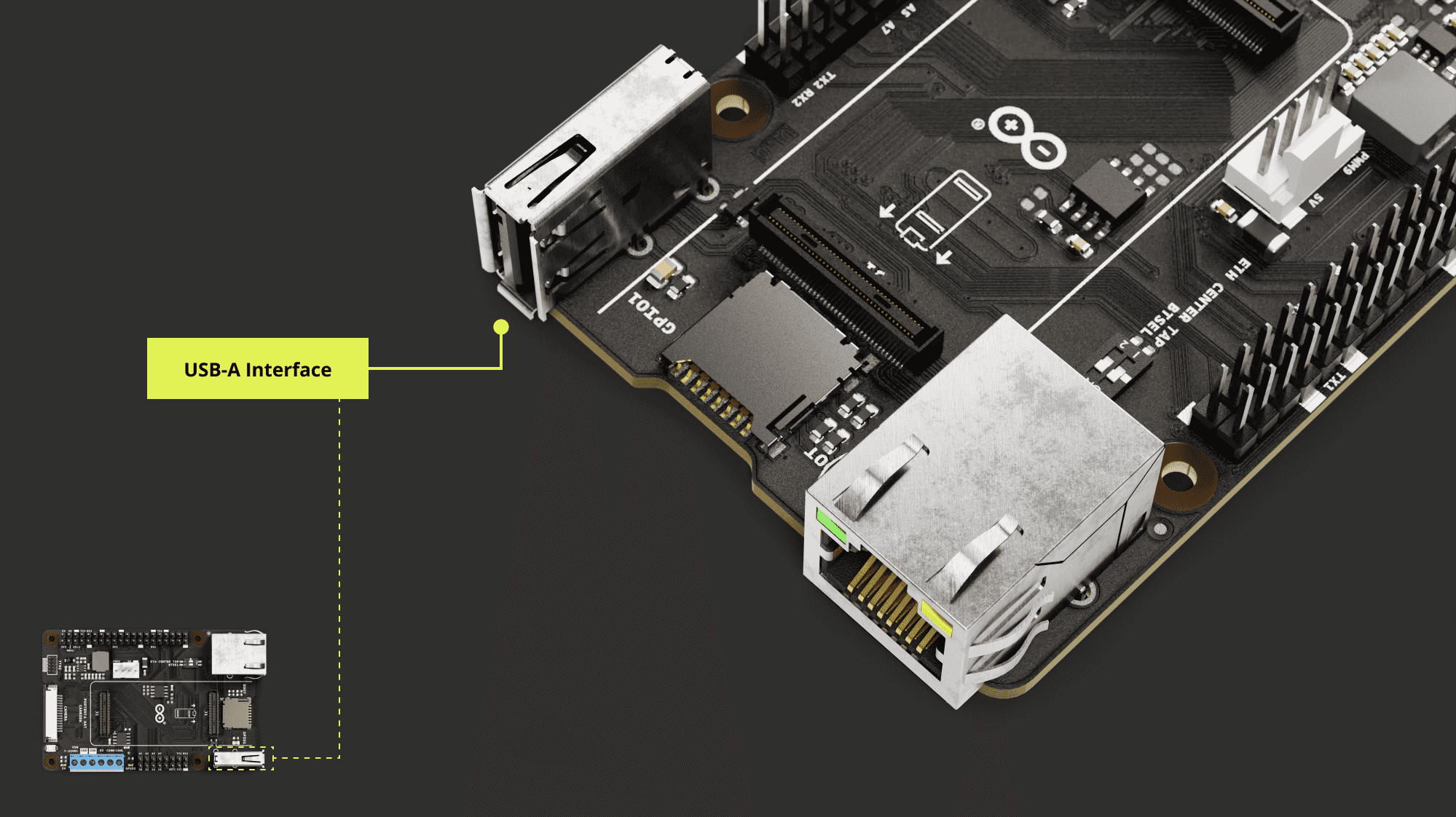 Ethernet connectivity: The carrier offers a Gigabit Ethernet interface through an RJ45 connector 1000 Base-T. If the carrier is paired with Portenta H7 or C33, the maximum speed is limited to 100 Mbit Ethernet.