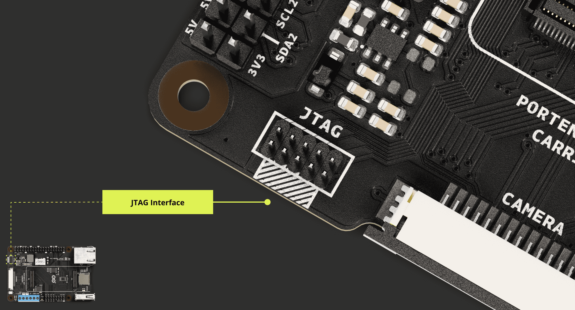 Debug interface: The carrier features an onboard 10x pin 1.27mm JTAG connector.