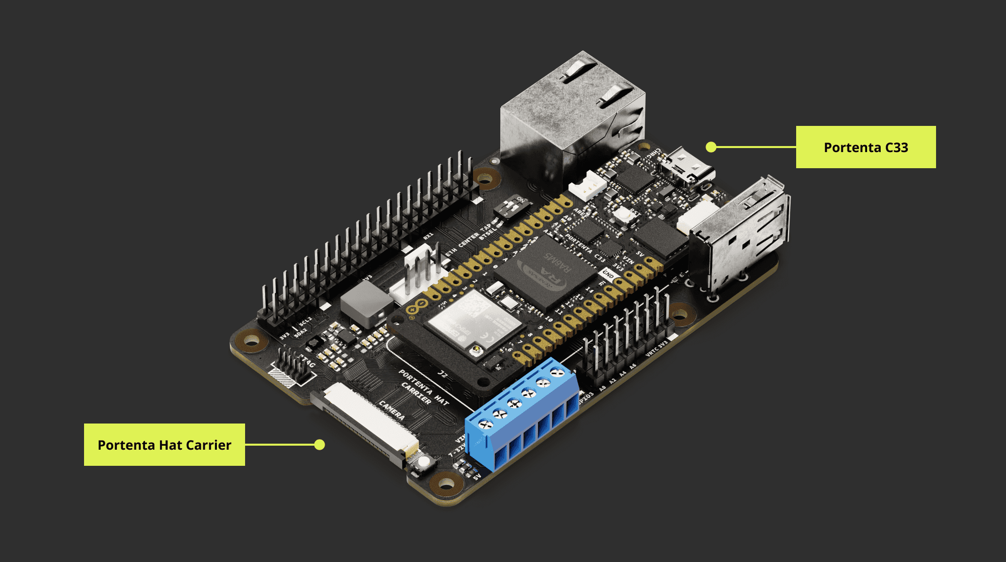 - Using a USB-C® cable (not included) connected to the Portenta core board of your choice powers not only the selected core board, like the Portenta X8, H7, or C33, but also the Portenta Hat Carrier, and any connected hat that does not require a dedicated external power supply.